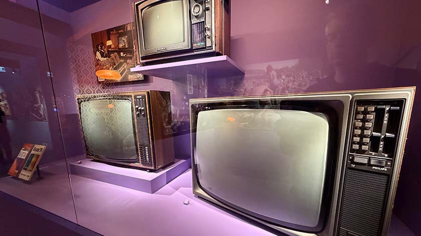 Op de 7e verdieping kun je voorwerpen uit de collectie van Beeld & Geluid bekijken. Op dit moment zijn er kostuums van mediapersoonlijkheden uit de 20e en 21e eeuw te zien: van de blauwe catsuit van Jerney Kaagman, de weergaloze Songfestival-jurk van Nikkie de Jager, kostuums van Jacobse & Van Es tot het roze pak van Splinter Chabot. Oude én nieuwe nostalgie dus! Ontdek de personen achter deze kostuums of pak zelf de spotlights en maak een foto.