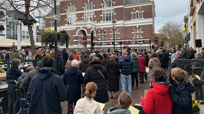 Het Interkerkelijke comité ‘Paaszang Raadhuisplein’ organiseerde op zondag 5 april 2026 voor de 83ste keer een paassamenzang op het Raadhuisplein te Apeldoorn. Rond 08.00 uur komen enkele honderden bezoekers op het plein om ruim een half uur lang bekende paasliederen te zingen en te luisteren naar een korte meditatie.