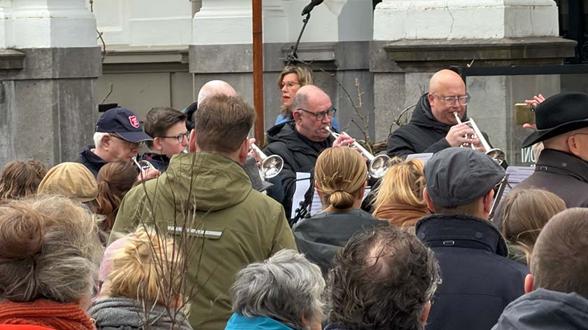Als je aankomt op het Raadhuisplein, hoor je het carillon al paasliederen spelen. Het korps van het Leger des Heils speelt muziek. Wanneer je het plein opgaat, word je begroet met ‘De Heer is waarlijk opgestaan’ en je ontvangt een liturgie. Frieda Hanouwer heet iedereen welkom. Hester Smits houdt een korte toespraak. Bekende liederen die gezongen worden: Daar juicht een toon, Jezus leeft in eeuwigheid, Christus onze Heer verrees, Kroon Hem met gouden kroon en U zij de glorie. Gé Drayer sluit het event af met een korte toespraak en het gezamenlijk bidden van het ‘Onze Vader’.